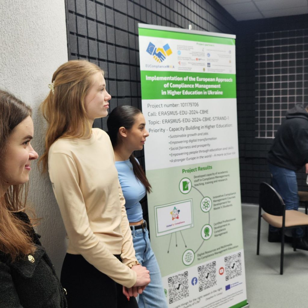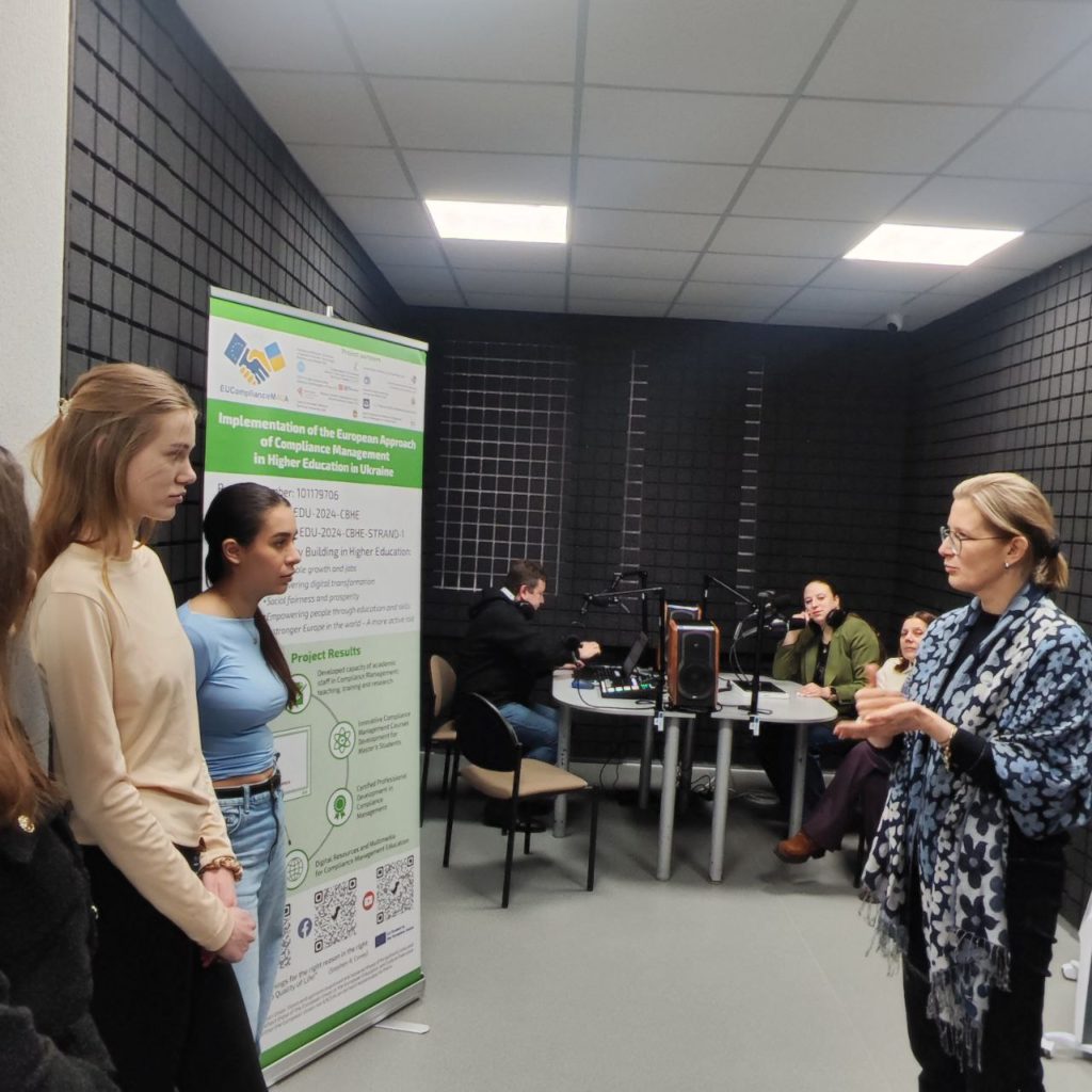 The studio was established within the international Erasmus+ project ERASMUS-EDU-2024-CBHE“Implementation of the European Approach of Compliance Management in Higher Education in Ukraine” (EUComplianceM4UA, No. 101179706). The aim of the project is to integrate European approaches to compliance management into the educational programmes of Ukrainian higher education institutions and to train competitive specialists whose competencies meet European standards and labour market needs.