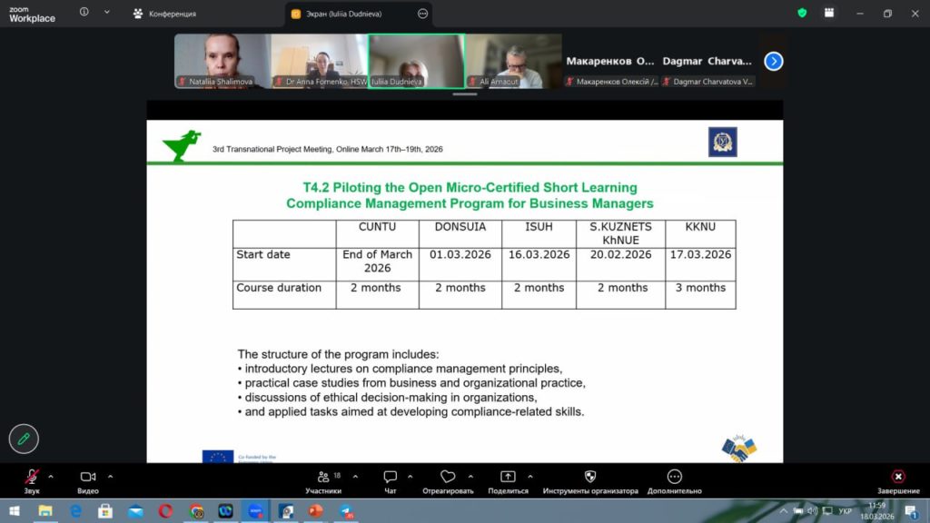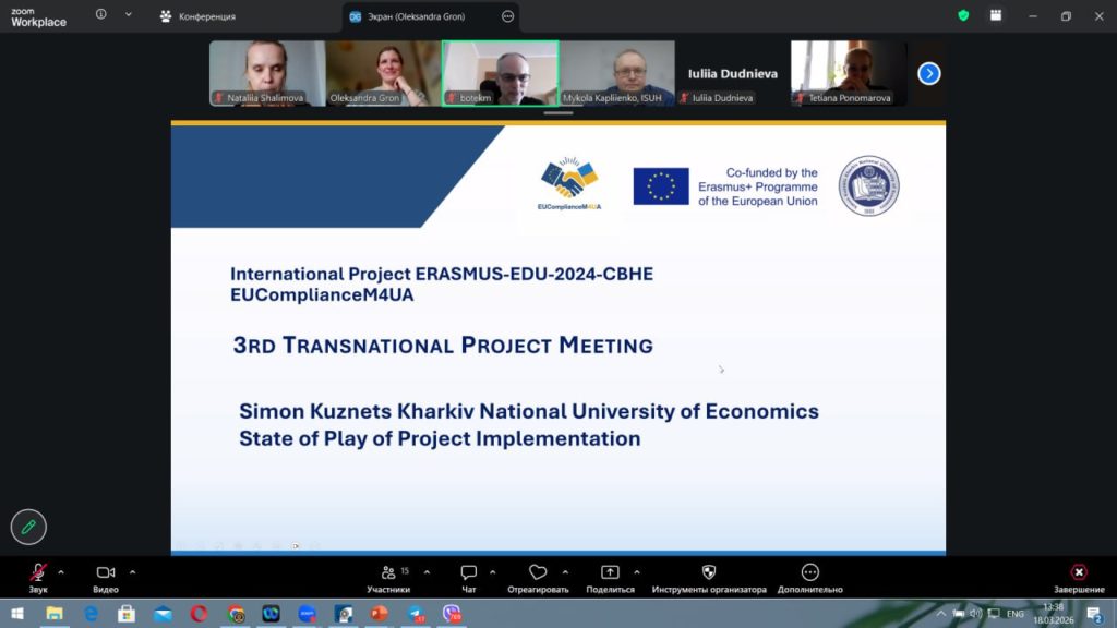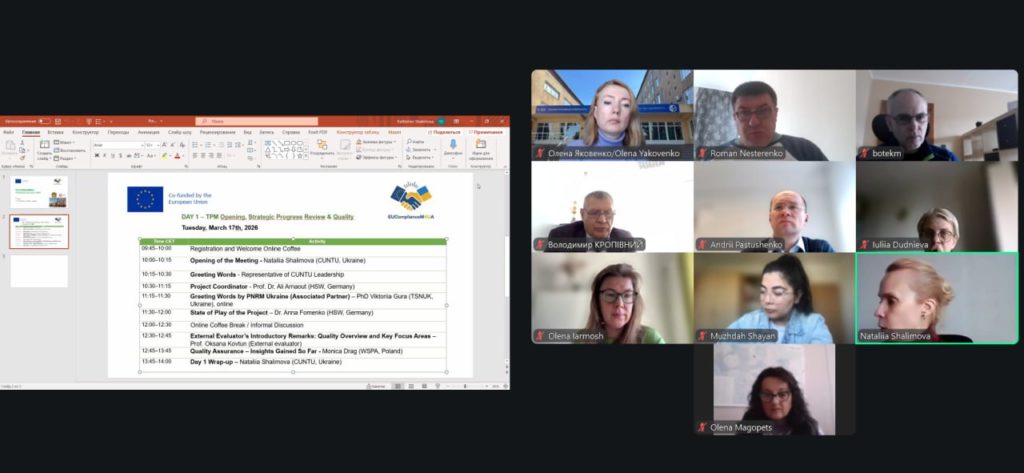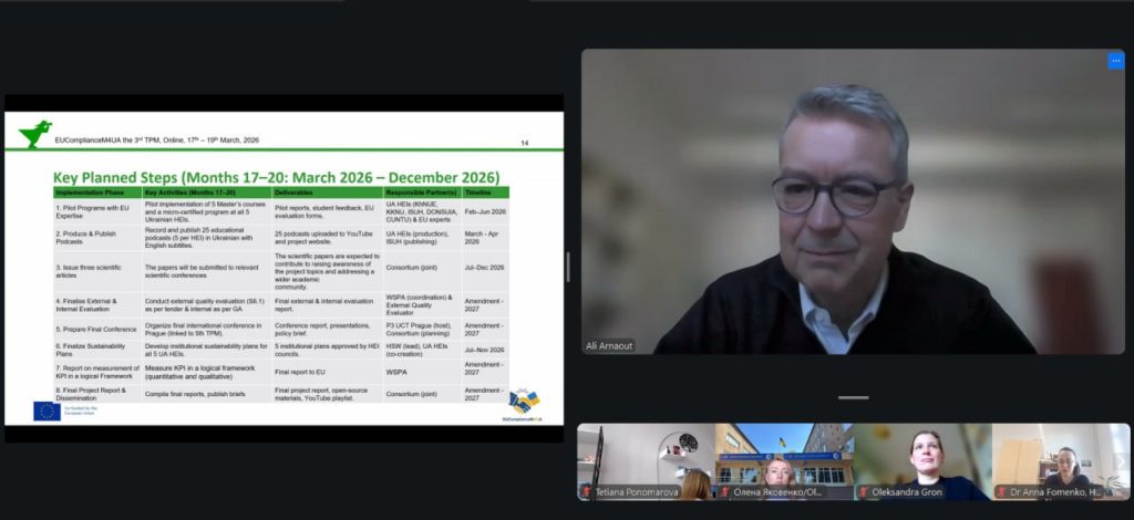 Третя транснаціональна зустріч – 3rd Transnational Project Meeting (TPM3) – партнерів проєкту EUComplianceM4UA (Erasmus+) відбулася 17–19 березня 2026 року в онлайн-форматі.